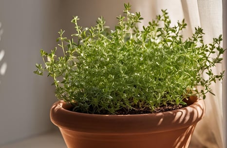 Thyme is a hardy herb packed with antimicrobial properties. It’s a natural remedy for sore throats, coughs, and colds, often brewed as a tea or used in steam inhalation. It grows well in a sunny indoor spot with well-drained soil and occasional watering. Plus, it adds a lovely flavor to home-cooked meals!